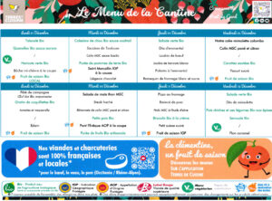 MENUS de la CANTINE pour le mois de DECEMBRE 2025 🕛🥗🥘🍲🍚🍅🥒🥦🍗🍖🍏🍐🍊🍌🍓🍑🍒