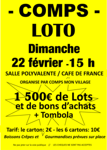 Du CÔTÉ des ASSOCIATIONS : LOTO organisé par l’association COMPS MON VILLAGE